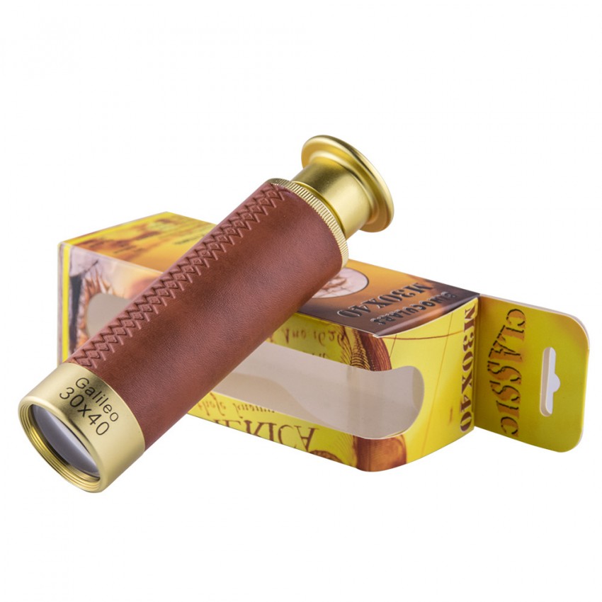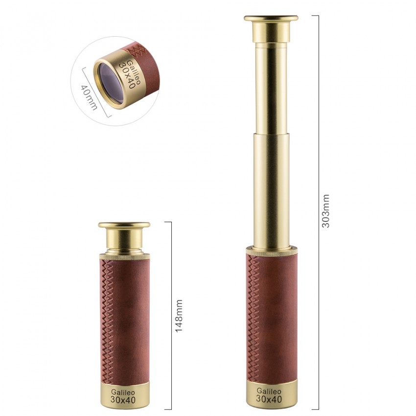 The main part of the lens body is high-quality copper, and the grip part is covered with high-quality leather. It has an elegant appearance and has a heavy metal feeling when held in the hand. The all-optical lens has a clear view, open and bright! It shrinks very small! easy to carry!