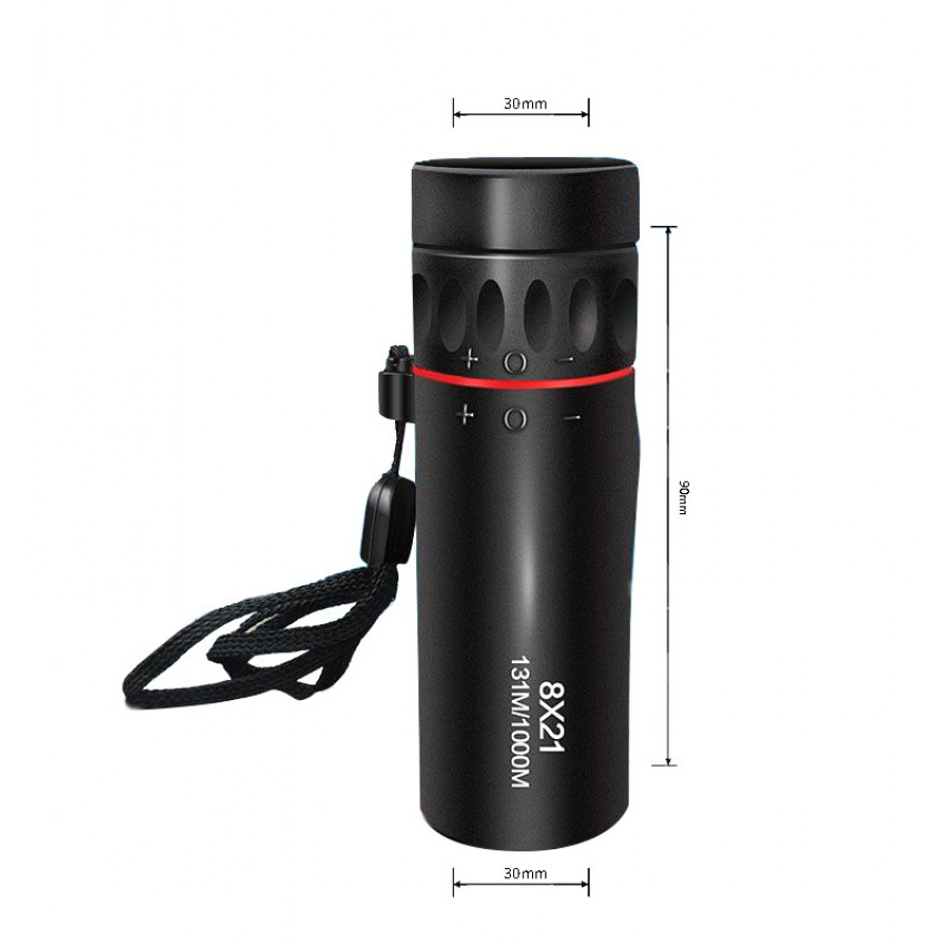 Features: Moderate magnification, high-definition optical quality, all-metal lens body, covered with rubber. Rugged, compact and easy to carry. Wholesale customized Huaxiang 8x21 mini red circle monoculars advertising promotional pocket gifts souvenirs