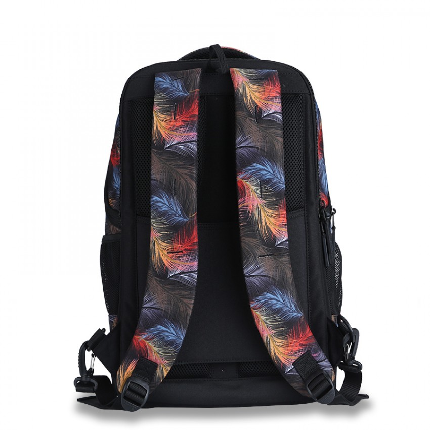This bag back panel is with soft EVA foam padded which with holes in it and mesh on top, can reduce the contact with our body, which we will feel breathable and comfortable.  Big capacity and 3 compartments, easy to sort and store our daily stuff like books and laptop. 600D polyester fabric with PU coating, which can ensure the durability and water repellent function. 19 colors selection, it will be easy to find your interested styles.