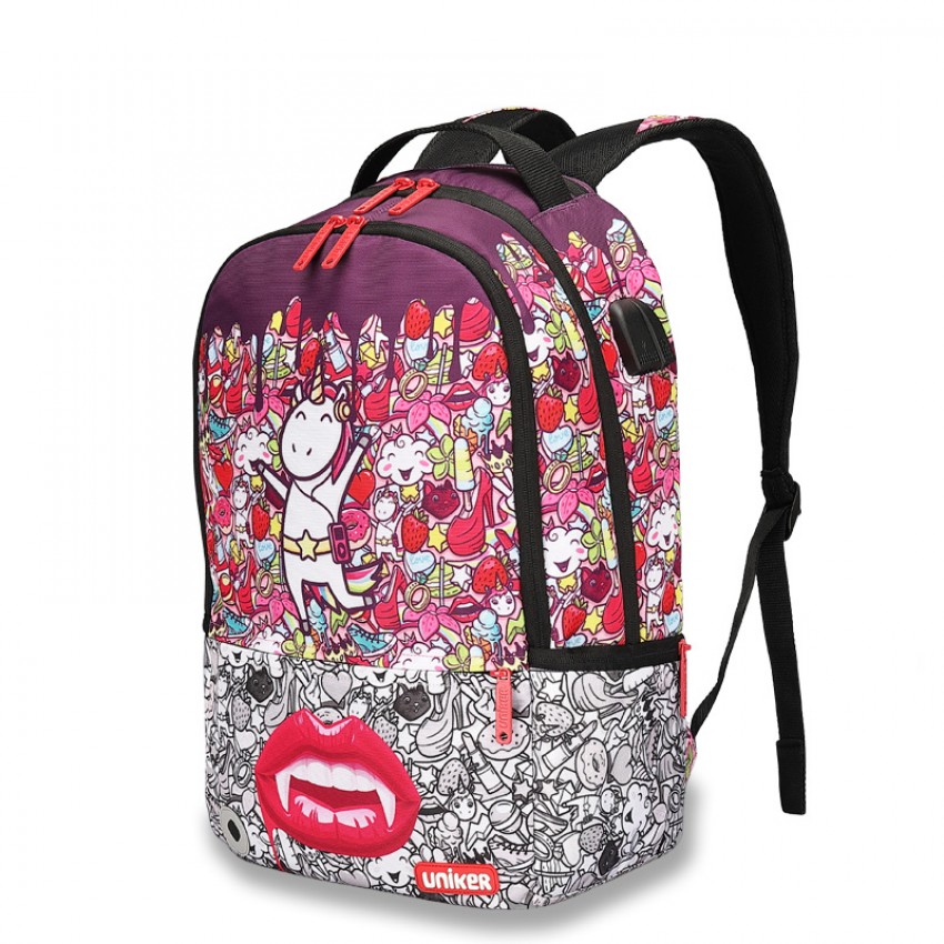 This bag back is with soft EVA foam padded which with holes in it and mesh on top, can reduce the contact with our body, which we will feel breathable and comfortable.  Big capacity and 3 compartments, easy to sort and store our daily stuff like books and laptop. 600D polyester fabric with PU coating, which can ensure the durability and water repellent function. 12 colors selection, it will be easy to find your interested styles.