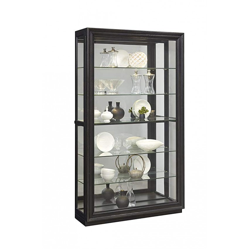Beautifully display your favorite pieces in this curio. Its transitional style and dark finish complements almost any décor. Four adjustable shelves and one stationary shelf provide ample display space. Beautifully light up you pieces with the three way touch light. Sliding front Entry make it easy to rearrange at any time.